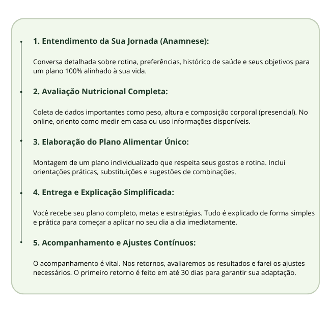 Meu propósito é tornar a nutrição leve, acessível e prazerosa, ajudando você a criar uma relação mais saudável com a comida e com o seu corpo.